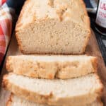 This simple homemade beer bread is soft, moist, and chewy with a beautiful golden crust. This one-bowl recipe is all made by hand with a few simple everyday ingredients. It is the easiest bread you’ll ever make, just simply mix and bake!