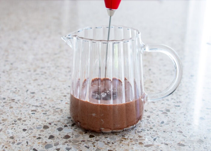 - Use a handheld frother or whisk until the mixture becomes creamy and airy.