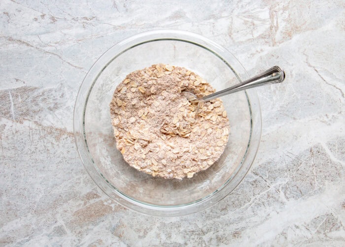 Step #1) In a medium mixing bowl, toss together the oats, oat flour, coconut sugar, and cinnamon.
