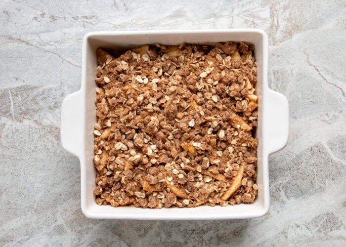 Step #4) Sprinkle the oat mixture on top. Bake at 350F for 40-45 minutes.