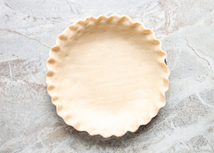 - Preheat oven to 350F. Line a 9" pie plate with a single pie crust. Crimp the edges as desired and set aside.1 9-inch pie crust
