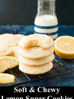 These soft and chewy lemon sugar cookies are buttery and full of fresh lemon flavor. They are crispy on the outside with a sparkly sugar coating and they take less than 30 minutes to make!