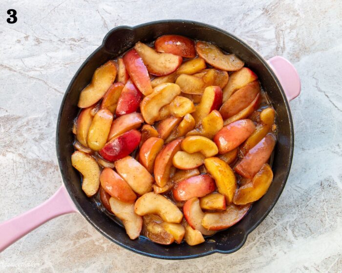Step #2) Add the apples. Cover and cook for 15 minutes or until the apples are tender, stirring occasionally.
