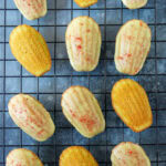 Dip each madeleine (ridge side) into the glaze and let the excess drip back into the bowl. Place the madeleine (glaze side up) back onto the wire rack to set. Sprinkle with freeze-dried strawberries if desired.