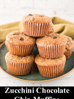 These zucchini chocolate chip muffins are soft, moist, and fluffy. They are filled with chocolate chips and they finish with a spicy cinnamon kick. They are easy to make and freeze really well.